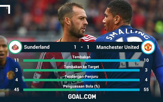 FT: SUNDERLAND 1-1 MANCHESTER UNITED, tidak ada tambahan gol tercipta di babak kedua kendati kedua tim masih menerapkan skema permainan terbuka. Hasil ini membuat United masih belum mampu meraih poin sempurna dari dua laga pembuka mereka di musim ini.